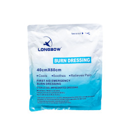 Opatrunek hydrożelowy Longbow to specjalistyczny wyrób medyczny, który przeciwdziała negatywnym skutkom oparzenia, łagodzi ból i przyśpiesza gojenie rany. Opatrunek składa się ze sterylnego płata poliestru nasączonego specjalnym żelem chłodzącym, który absorbuje ciepło, chroni miejsce oparzenia przed zanieczyszczeniem i wnikaniem drobnoustrojów oraz znacząco łagodzi ból. Produkt posiada także właściwości antybakteryjne i przeciwgrzybicze. Żel chłodzący jest bezzapachowy, zgodny z pH ludzkiej skóry oraz hipoalergiczny – nie wykazuje reakcji alergicznych w kontakcie ze skórą. Opatrunek można bezpiecznie stosować u poszkodowanych ze wszystkich grup wiekowych, zarówno u niemowląt i małych dzieci, jak również osób starszych.